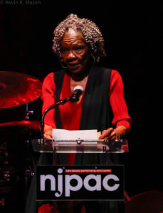 Then NJPAC President and CEO, John Schreiber, came to the microphone and acknowledged the Vespers Committee and Dorthaan Kirk. “I’m not going to tell you how old I am…but I met Dorthaan Kirk at Kennedy Airport in 1976, when I was a kid!” It was his first summer in the jazz business, working for George Wein, and they were taking 200 musicians from New York to France for the Jazz Festival in Nice, and his task, after only being on the job for two weeks, was to check in all the musicians. “I did not know what in the world I was doing.” He added that he was totally over his head until Dorthaan approached him and offered her help. He thanked Kirk for that, and all she had done for jazz since.