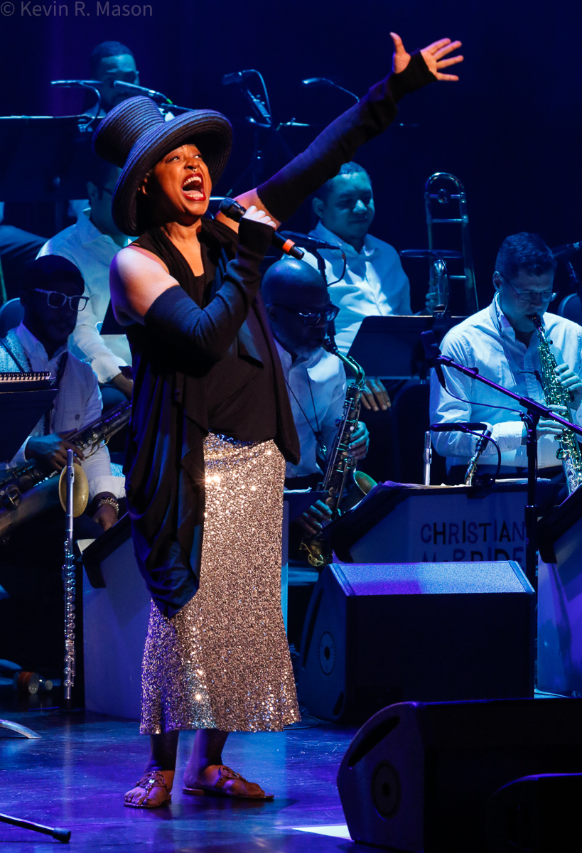 The Christian McBride Big Band began the music with an energetic swing that thrilled the crowd. The band included trumpeter Freddie Hendrix and drummer Will Calhoun. After McBride introduced vocalist Lisa Fischer with much praise, she came to the microphone to perform a truly soulful and bluesy rendition of “Respect” that put her personal stamp on the Aretha Franklin classic, and she hit some of the highest notes on the scale! Then Lisa sang a gorgeously poignant “Midnight Sun.”