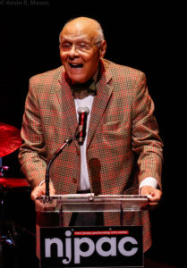Honoree of the night, Dr. M. William Howard Jr. came on stage and joked, “Take your shoes off…I’m a Baptist preacher, and I’m going to give a long speech. Are you ready? Well pretend you are!” He asked his wife, Barbara Howard, to stand up in the audience, adding he was glad she was there, “on the outside chance that somebody might say something good about me tonight,” noting that he’s been trying to impress her for 55 years! Rev. Howard said he accepted the honor because he did indeed plant the seed of Jazz Vespers at Bethany. However, he called Dorthaan Kirk the “not-so-secret sauce of Jazz Vespers.” He said without the high regard the musicians (who have performed through the years) have for Dorthaan, it never would have happened. He then spoke about the history of jazz, which has its roots in gospel. Rev. Howard also thanked John Schrieber and NJPAC for their sustained support.