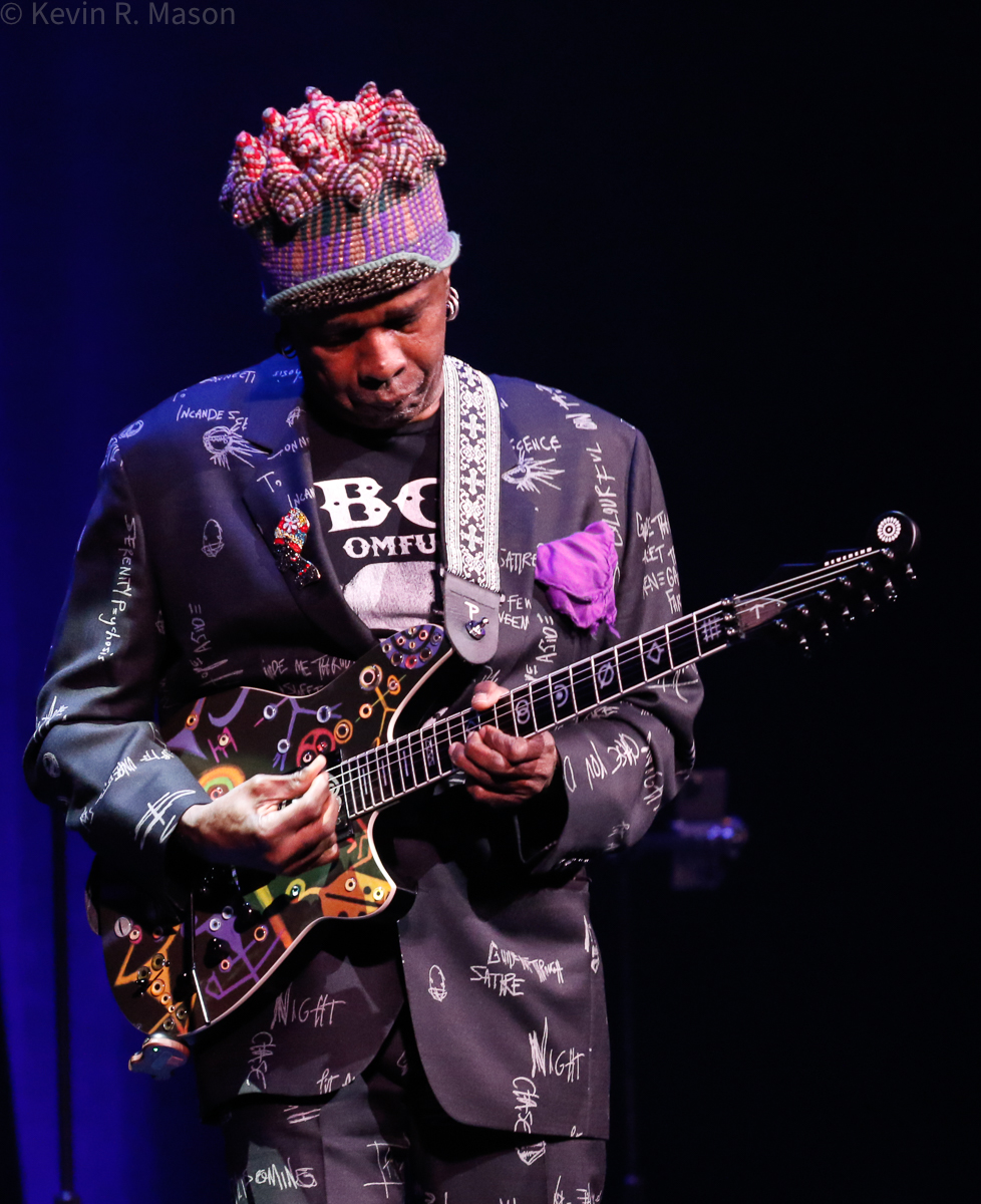 George Clinton entered the stage wearing a blindingly bright leopard skin jacket and displayed an energy that belied his age. Then Vernon Reid joined the band that included drummer Will Calhoun, alto saxophonist Darryl Dixon, bassist Gary Foote, keyboardist Russell Graham, trombonist Danny Hall, and trumpeters Freddie Hendrix and Joe Romano. The vocalists were Jenny Douglas, John James, and Nikki Richards. The group covered a wide variety of funk and R&B from the 60s, 70s and 80s, including “Roller Coaster” that segued into a sizzling hot “Fire” and the mash-up really lived up to the funky theme of the concert.